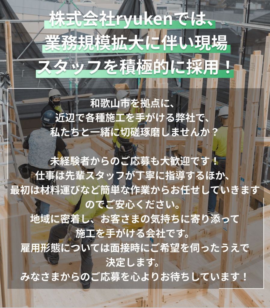 | 職種 | 現場スタッフ ◎未経験者・経験者ともに大歓迎! |
